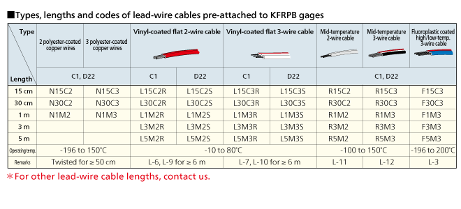 Operating temperature in combination with major leadwire cables (°C) Polyester-coated copper wire: -196 to 150ºC