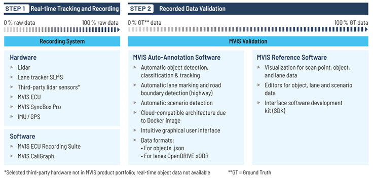 MOSAIK™ Suite는 라벨이 지정된 그라운드 트루스 데이터를 자동으로 생성하는 소프트웨어 도구로, 검증 프로젝트와 AI 애플리케이션의 학습 데이터 수요를 효과적으로 지원합니다. 라벨링된 그라운드 트루스 데이터의 탁월한 품질을 통해 센서 시스템의 성숙도를 빠르고 상세하게 파악할 수 있습니다.