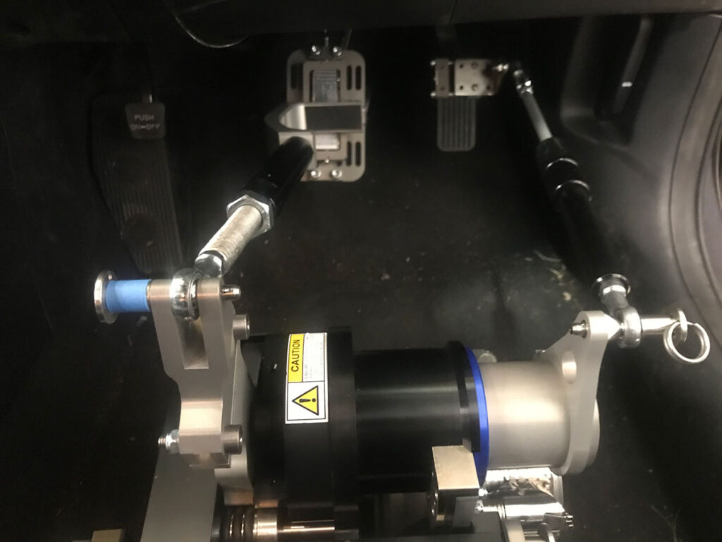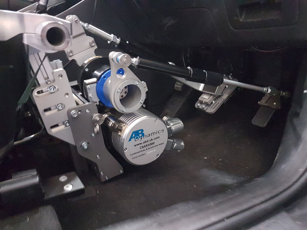 Where more brake force is needed, the Combined Brake and Accelerator Robot (CBAR) 1000 - the big brother of the CBAR 600 - has enough power for aggressive brake testing. The CBAR 1000 has been specifically designed for high-performance vehicles that require high brake forces and high pedal speeds, delivering up to 1300N of brake force and 800mm/s of pedal speed. With the addition of an optional safety brake, the CBAR 1000 can be used for driverless applications.