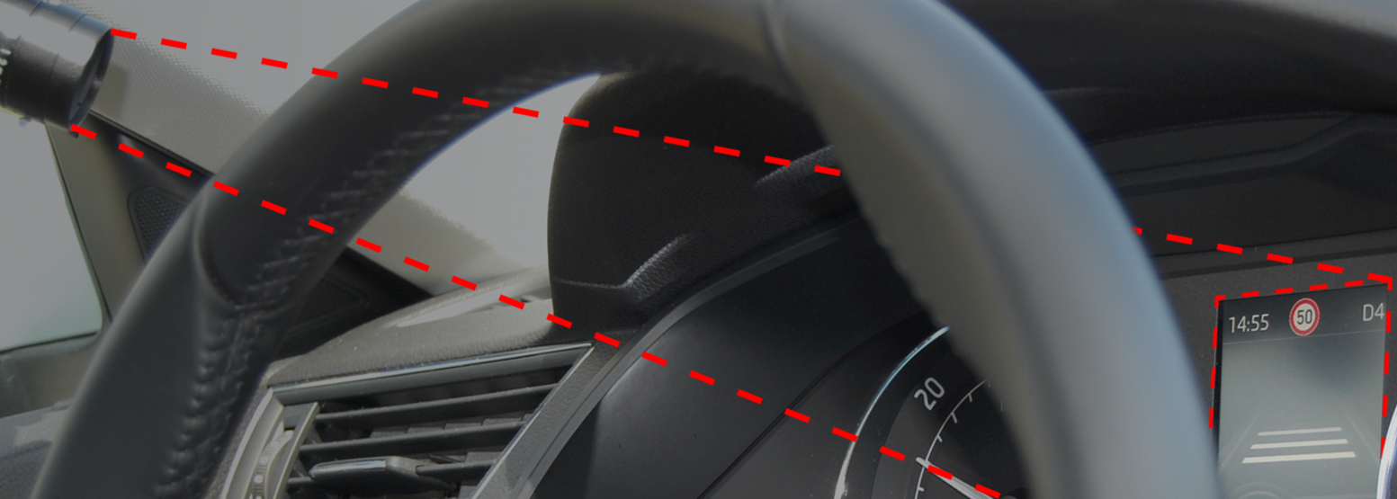 AVAD3 detects acoustic and optical warnings and messages from inside the vehicle and directs them to the driver. A high-performance camera and microphone are fitted for this purpose. It triggers corresponding trigger signals as digital I/O, LAN and CAN messages within a few milliseconds whenever it detects sound patterns, shape and colour changes on the instrument cluster and head-up display.