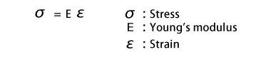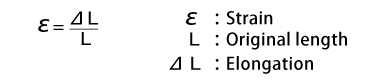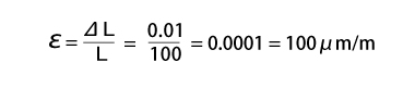 For example, if a tensile force makes a 100 mm long material elongate by 0.01 mm, the strain initiated in the material is as follows: