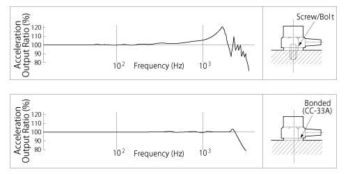 Install the acceleration transducer aligning the sensitive axis ("-" marked on the transducer) with the acceleration measuring direction. The polarity of transducer output is positive if the transducer is installed with the" +" directed to the center of the earth (the gravitational acceleration).